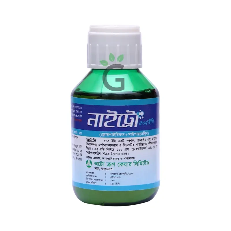 নাইট্রো ৫০৫ ইসি একটি স্পর্শক, পাকস্থলীয় ও শ্বাসরোধক ক্রিয়াসম্পন্ন অর্গানোফসফরাস এবং সিন্থেটিক পাইরিথ্রয়েড কীটনাশকদ্বয়ের মিশ্রণে তৈরি একটি শক্তিশালী তরল কীটনাশক। এর প্রতি লিটারে ৫০০ গ্রাম ‘ক্লোরপাইরিফস’ এবং ৫০ গ্রাম ‘সাইপারমেথ্রিন’ সক্রিয় উপাদান আছে। এই মিশ্রিত উপাদান দু’টির নিজস্ব কার্যকারিতা এখানে সমন্বিতভাবে পাওয়া যায়।